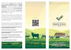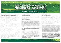 Prin prezenta vă facem cunoscut faptul că în perioada 10.05.2021 – 31.07.2021 are loc Recensământul General Agricol.